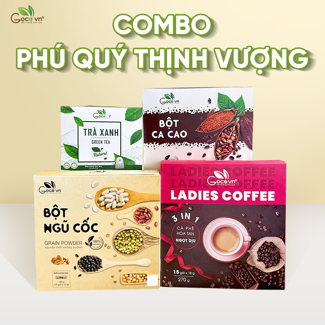 - Trà Xanh Goce + Bột Ca Cao Goce + Bột Ngũ Cốc Goce + Ladies Coffee 3in1